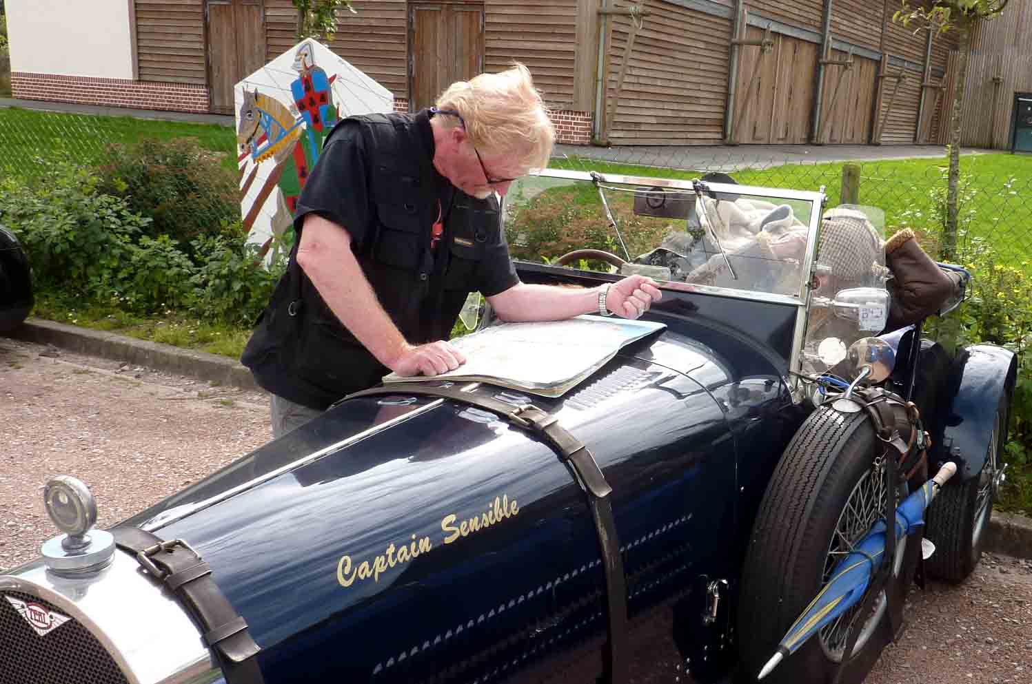 Dot and Phil demonstate the impressive turning circle of their Teal Type 35. One of the many joys of Teal motoring is how easy the car is to drive (and turn round when the leader takes the wrong fork. Laughter and ribald comments may, on occasion, be heard)